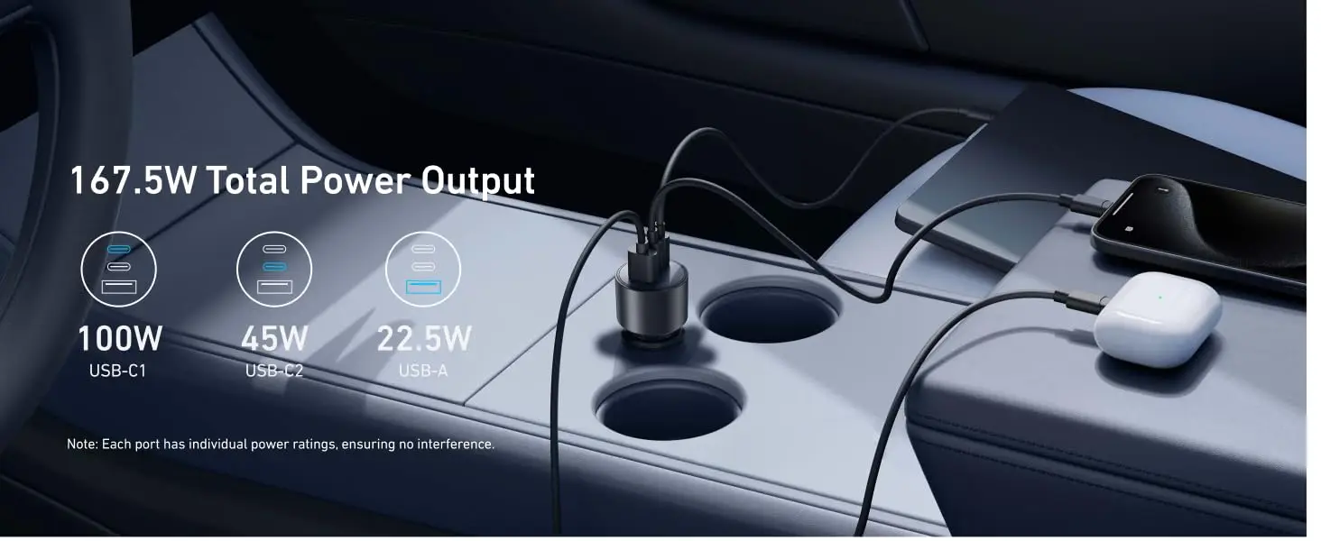 Overall, the Anker 167.5W Triple-Port Car Charger combines high performance, versatility, and portability. With multiple ports, ultra-fast charging speeds, and a compact build, it is an excellent accessory for anyone who needs reliable power while traveling.