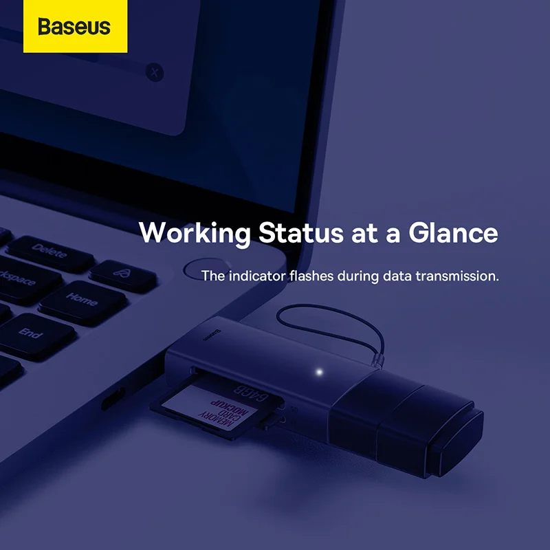 Working Status at a Glance: Plug in the card reader, and the indicator lights up, providing a clear indication of its operational status. The flashing light during data transmission further ensures that you are aware of ongoing activities.