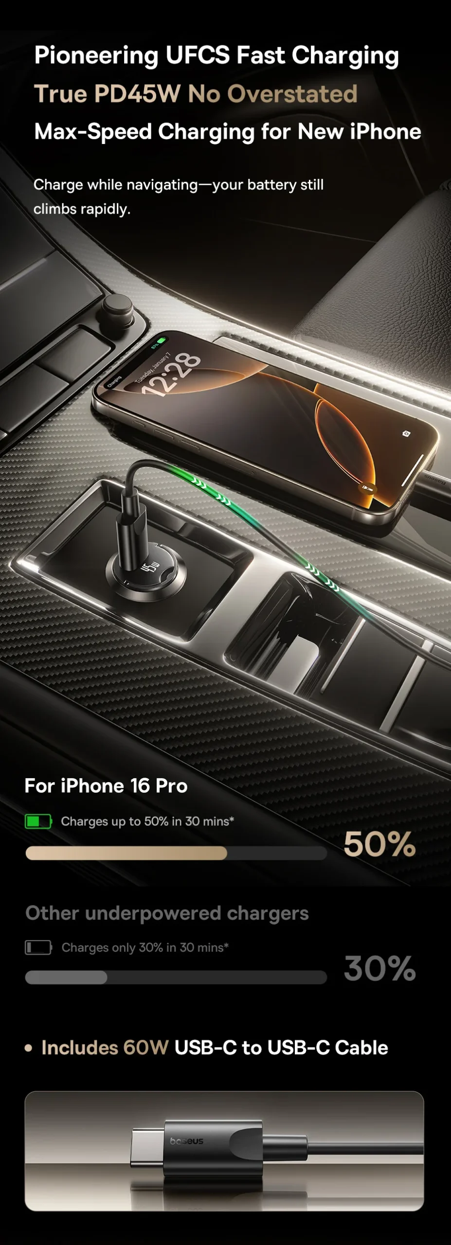 With UFCS multi-protocol support, the charger intelligently adapts to a wide range of devices, delivering the correct voltage and current automatically. This makes it especially effective for max-speed charging on new iPhones, while remaining fully compatible with other smartphones, tablets, and USB-powered accessories. No guesswork—just efficient, stable power every time you plug in.
