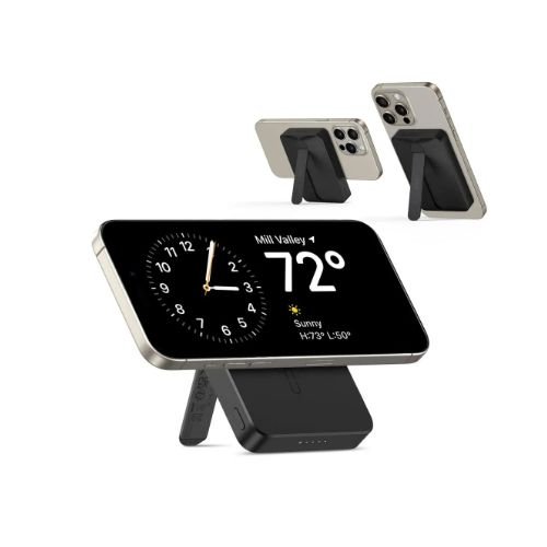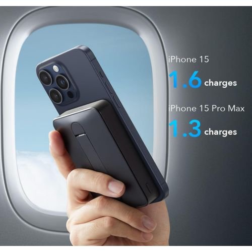 Adding to its practicality, the power bank includes a built-in foldable kickstand, allowing you to prop up your phone vertically or horizontally. This makes it ideal for watching videos, making video calls, or following recipes—hands-free—while your device recharges.