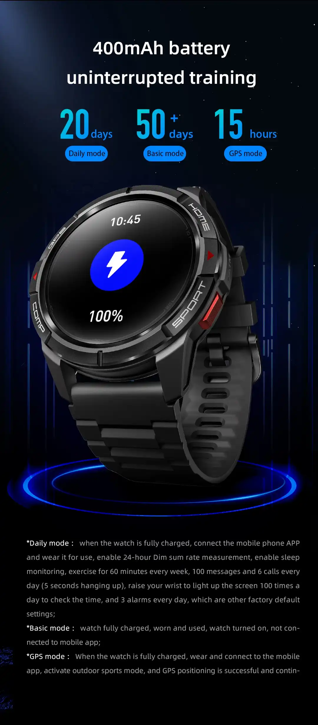Usage time: Daily mode: 20 days, Basic mode: 50 days